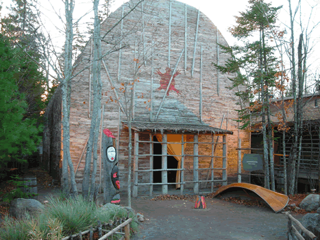 Nous arrivons à Wendake, une réserve Huron-Wendat. La transition est imperceptible si ce n'est les panneaux des rues en bois écrits en langue Wendat. Les Français, à qui ils avaient demandé protection, leur donnèrent le nom de "Huron" parce que leur coiffure ressemblait à la fourrure des Hures (sangliers). Ici, pas de chevauchée indienne c'est une invention, comme beaucoup d'autres, des cinéastes.