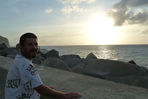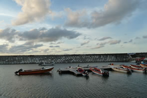 Samuel et moi décidons de marcher jusqu'au bout du "Bout du Bout" ... enfin, je veux dire jusqu'au bout de la nouvelle jetée construite récemment, qui protège le port de la forte houle venant du nord, face à l'île de la Dominique. La passe entre la Dominique et la Martinique est dangereuse. N'empêche, c'est là que les pêcheurs, chaque jour, à bord de leurs fragiles embarcations traquent le coulirou et autres gros poissons de mer.