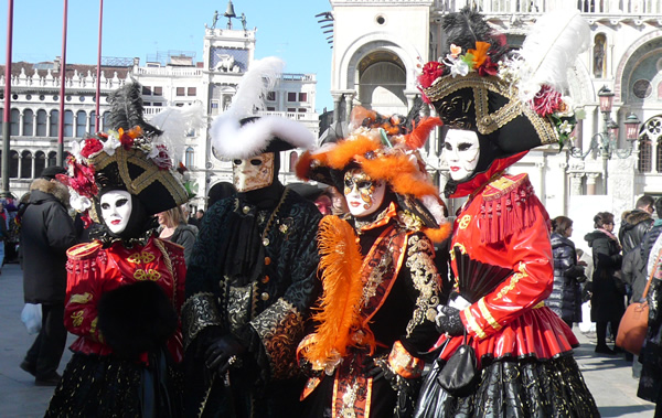 Pendant une semaine, des gens venus des quatre coins du monde se retrouvent déguisés sur la place Saint Marc.