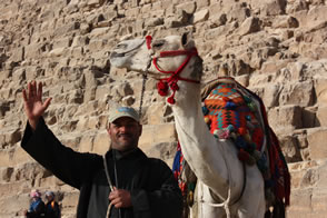 Tandis que la caravane de chameaux guette le touriste de passage, nous disons adieu aux pyramides renfermant encore tant de mystères sous leurs pierres.