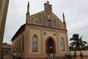 Nous empruntons la jetée construite pour l'arrivée du Pape Jean-Paul II ; Togoville est aussi un lieu de pèlerinage, la vierge étant apparue à des enfants sur le lac.