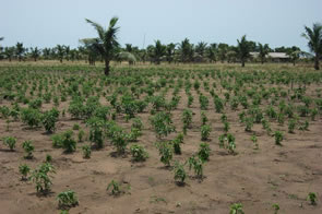 Entre le fleuve Mono et la route inter-état, s'étendent des hectares de cultures maraîchères et des cocoteraies. Hervé et Véronica apprécient l'eau du coco fraîchement cueilli ainsi que la chair encore molle de la noix de coco ;