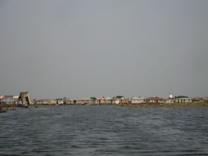 Les premières maisons aux toits de tôle peinte se profilent. C’est tout un village qui vit sur l’eau, avec sa poste, ses bars, sa maternité et même ses lieux de culte. La vie dans des cases construites sur pilotis dans un lac peu profond a préservé les premiers habitants des guerriers "Fons" que les tabous empêchaient de s’hasarder sur l’eau.