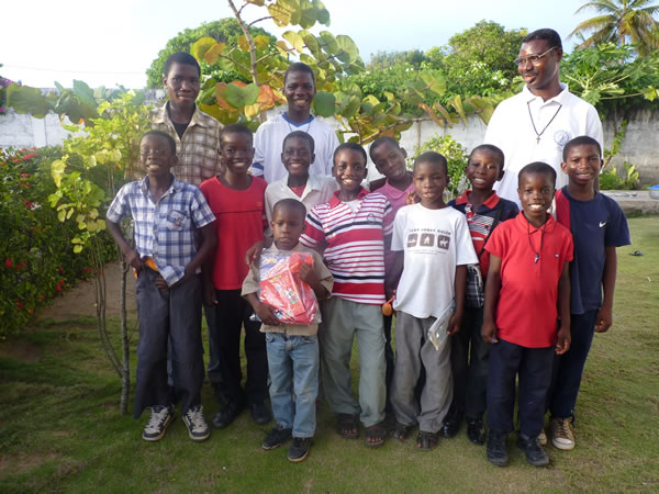 Nos petits protégés, 13 enfants orphelins de Lomé ont débarqué à la maison avec Frère Patrick, ravis de nous revoir et de passer la journée avec nous. Sylvestre manque à l'appel, il est resté au foyer avec Soeur Marie-Françoise pour soigner sa crise de paludisme.