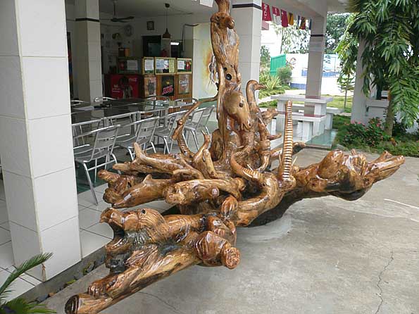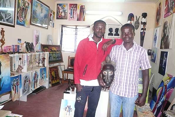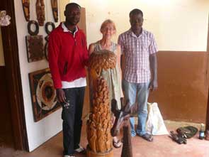 Près de la mairie nous rendons visite à l'artiste qui a créé la sculpture de l'hôtel Safari.