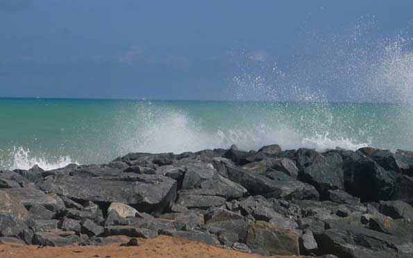 Un décor paradisiaque s'offre à nos yeux ébahis. La mer rejoint le ciel dans un camaïeu de bleus puis revient lécher le sable doré après s'être fracassée bruyamment sur les rochers.